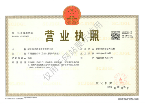 版權(quán)所有:河北巨龍藥業(yè)有限責(zé)任公司 冀ICP備19023826號-1   1733465040158507.png  冀公網(wǎng)安備13058102000452號 證書編號 :(冀)-非經(jīng)營性-XXXX-XXXX